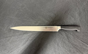 Carving Knife - A carving knife is used almost exclusively for carving all types of both raw and cooked meat, from brisket to a holiday ham. Typically, they have a long, thin blade with a pronounced tip that improves precision and maneuverability, even around bone, fat, and cartilage.