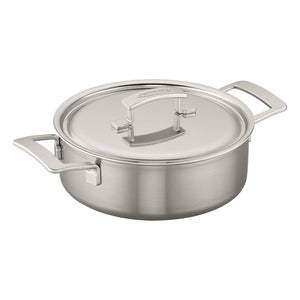 The Industry series is designed to meet the demands of discerning professional and home chefs alike. Strengthened by over a century of stainless steel expertise, this exceptional line features impressive engineering, unsurpassed quality, and stylish design. Fabricated from layers of aluminum and stainless steel, including a thick aluminum core, this premium cookware boasts superior heat conduction, retention, and distribution for perfect browning, searing, and frying. Along with Demeyere’s signature flat base technology—which ensures no hot spots—even cooking is guaranteed every time. Dripless pouring rims and stay-cool, ergonomic handles make it a pleasure to cook with these pots and pans. The revolutionary Silvinox® surface treatment maintains a flawless, silvery white finish that looks like new even after years of use.