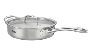 Sauté Pans - The Sauté Pan is meant for sautéing, which translates into being able to fry food while moving it around quickly in the pan, all while covered with a lid. Sauté pans are similar to fry pans when it comes to the design, they too have a flat bottom, however the main difference between fry and sauté pans is that instead of having rounded sides, sauté pans have straight sides. Seeing as they are deeper than a fry pan, sauté pans can be used for multiple uses in addition to sautéing.